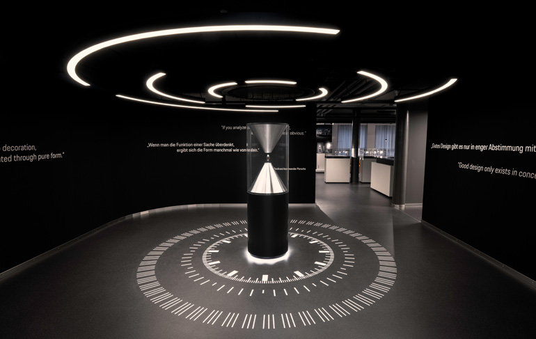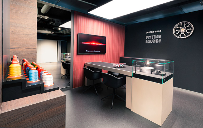 Die neue Manufaktur ist Produktionsstätte und zugleich Markenerlebnisraum. Im Erdgeschoss befindet sich eine Ausstellungs- und Eventfläche, die die Entwicklung der Porsche Design Timepieces seit 1972 nachzeichnet. Der Konfigurationsbereich, die sogenannte Fitting Lounge, bietet Kundinnen und Kunden die Möglichkeit, ein custom-built Timepiece direkt vor Ort zu gestalten und nach der individuellen Fertigung dort abzuholen. Konfiguration, Produktion und Übergabe finden damit erstmals unter einem Dach statt. Ein besonderes Highlight ist die Möglichkeit für Kundinnen und Kunden, ihren Porsche in die Manufaktur zu fahren und so die Verbindung zwischen Automobil und Zeitmesser auf einzigartige Weise zu erleben.
