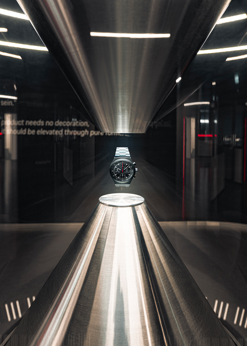 Über einen Gesamtzeitraum von drei Jahren von der ersten Begehung des damals leerstehenden Gebäudes bis zum Einzug in die fertige Manufaktur wurde ein ganzheitliches Konzept einer eigenen Produktionsstätte realisiert, welches die gestalterische und technologische DNA von Porsche in die Welt der mechanischen Uhrmacherkunst überträgt. Materialität, Technik und Gestaltung folgen dabei einem klaren Prinzip: Form und Funktion in perfekter Symbiose. „Swiss Made“ ist dabei nicht nur Herkunftsversprechen, sondern Ausdruck eines kompromisslosen Qualitätsanspruchs und integraler Bestandteil der Marken-DNA. Im Zentrum dieser Ausrichtung steht die Individualisierung. Custom-built Timepieces bilden das Herzstück des Portfolios. In der Manufaktur entstehen präzise gefertigte Unikate – konfiguriert nach den persönlichen Wünschen der Kundin bzw. des Kunden. Analog zur Konfiguration eines Sportwagens verbindet jedes Modell Ingenieurskunst und Funktionalität in einer klaren, reduzierten Formensprache.