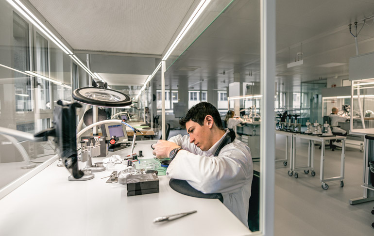 Mit ihrer klar definierten technologischen und organisatorischen Ausrichtung legt Porsche Design die Grundlage für eine zukunftsfähige Weiterentwicklung des Geschäftsbereichs Timepieces. Die Manufaktur in Grenchen ist auf langfristiges, organisches Wachstum ausgelegt: skalierbare Prozesse und potenzielle zusätzliche Kapazitäten schaffen die Flexibilität, künftige Entwicklungsschritte umzusetzen.